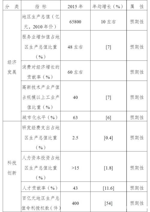 科技创新。自主创新体系逐步完善,研发经费支出占地区生产总值比重提高到2.5%;人力资本投资占地区生产总值比重达到15%以上;人才贡献率达到43%;百亿元地区生产总值专利授权数提高到400件,专利发展水平居全国前列;科技进步贡献率提高到60%以上。