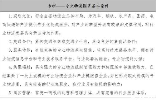 以完善供应链、提升价值链为重点,加快专业物流园区行业物流信息平台建设,完善行业配套功能,提高专业物流设施及技术装备水平,重点培育一批在所在专业物流领域具有主导者、先行者地位的省级专业示范物流园区。
