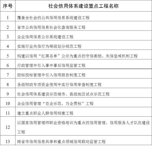 江苏省2015—2020年社会信用体系建设重点工程一览表