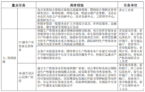 (二)建立试点示范推广制度。建立生产性服务业经验案例推广机制,试点单位和各地定期报送生产性服务业领域模式创新、政策服务等优秀典型案例,不断总结完善改革创新试点的成功经验,形成一批具有江苏特色的可复制经验做法,切实增强先发地区样板引领和辐射带动作用,补足补齐后发地区技术、经验和资源短板,全面提升全省生产性服务业均衡发展水平。(省发展改革委、省科技厅、省工业和信息化厅、省生态环境厅、省交通运输厅、省商务厅、省市场监管局、省广电局按职责分工负责)