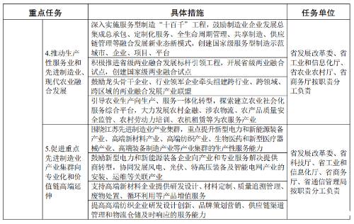 (三)促进重点先进制造业产业集群向专业化和价值链高端延伸。围绕江苏先进制造业产业集群,重点提升新型电力和新能源装备产业、高端新材料产业、高端纺织产业、生物医药和新型医疗器械产业、高端装备制造产业等产业集群的生产性服务能力。鼓励新型电力和新能源装备企业向产业和专业服务解决提供商转型,协同发展风电、光伏、特高压装备及智能电网产业的安装、运维等关联产业。支持高端新材料企业提供研发设计、材料定制、质量追溯管理、废物处置、循环利用等产品增值服务。提高高端纺织企业研发设计创新、品牌策划营销、供应链渠道管理和物流仓储及时响应的服务能力。鼓励生物医药和新型医疗器械企业向智慧医疗系统融合集成和一站式解决方案服务平台提供商转型。推动高端装备制造产业企业成长为集技术研发、产品设计、装备加工制造、设备成套、技术咨询及售后服务于一体的总承包项目供应商。(省发展改革委、省科技厅、省工业和信息化厅、省商务厅、省通信管理局按职责分工负责)