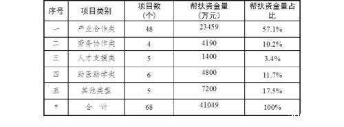帮扶实施劳务协作项目4个,安排帮扶资金共计4190万元,占帮扶资金总量10.2%。