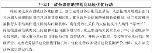 以政务诚信建设引领全社会诚信建设。建立健全政务信用管理体系,落实国家和省关于加强政务诚信建设的要求,全面依法行政,推进政务公开规范化和标准化。深化重点领域政务诚信建设,加强政府采购、政府和社会资本合作、招标投标、招商引资、地方政府债务、统计等领域政务诚信建设,督促政府部门和公职人员全面依法履行职责,严格履行向社会作出的承诺以及依法订立的各类合同,在社会信用体系建设中发挥示范表率作用,全面提升政府诚信水平。省市全面建设政务信用信息系统,依法记录政府部门和公职人员在履职过程中被依法追究责任的违法违约行为信息。在公务员录用、调任等工作中查询信用信息,在评先评优等工作中应用政务失信记录。实施政务诚信建设专项督察和监测评价,将评价结果纳入全省营商环境评价体系。持续开展政府机构失信问题治理,将党政机关作为失信被执行人案件纳入治理范围。强化各部门协调配合,形成合力,防范和化解政府失信风险,确保全省政府机构失信案件“清零”。加大政务诚信宣传力度,强化公职人员诚信教育,提升公职人员诚信意识。